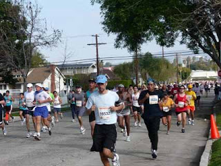crashed at my sister's that nite (we went and had rockin greek food at Sofi's and we ate too much and i drank too much and we watched a bunch of movies) and the next morning we took the dogs out for a morning walk and ended up in the midst of the LA marathon! look at all the healthy people!
